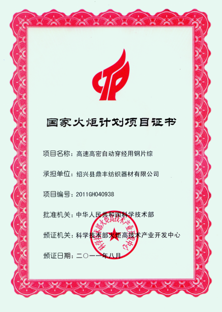 浙江鼎豐紡織器材有限公司始建于1986年,是一家專業(yè)生產各類無梭織機用鋼筘:噴氣筘、噴水筘、劍桿筘、其他類型鋼筘;鋁合金綜框、鋼片綜、停經片、經軸、織軸、卷布輥等產品及配件的民營企業(yè)。
